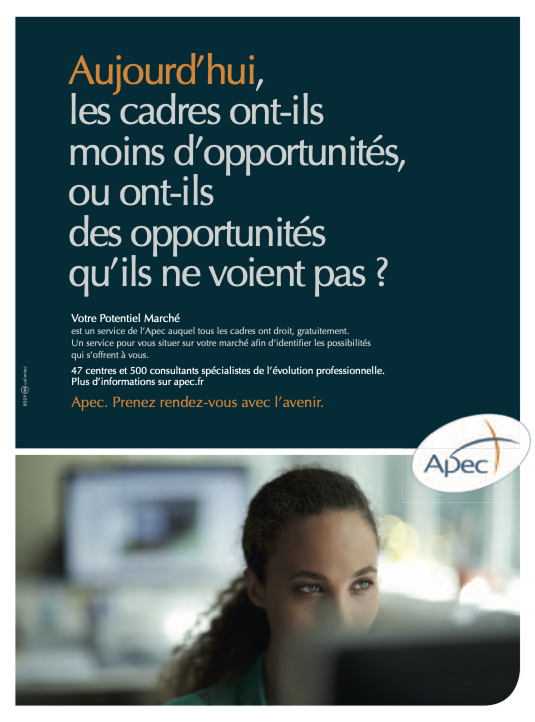 Ce nouveau positionnement est porté par une nouvelle signature : “Apec. Prenez rendez-vous avec l’avenir”.